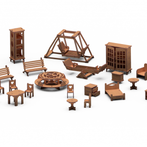 (MV-007) KIT DE MOVEIS ESCALA POLLY COM 21 PEÇAS MDF CRU